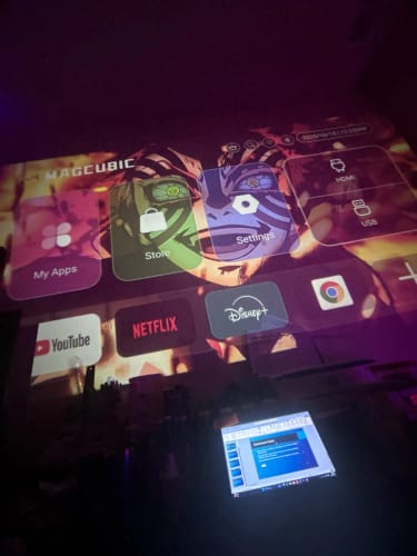 The projector can display up to a 130-inch screen, creating a true home-cinema experience.
